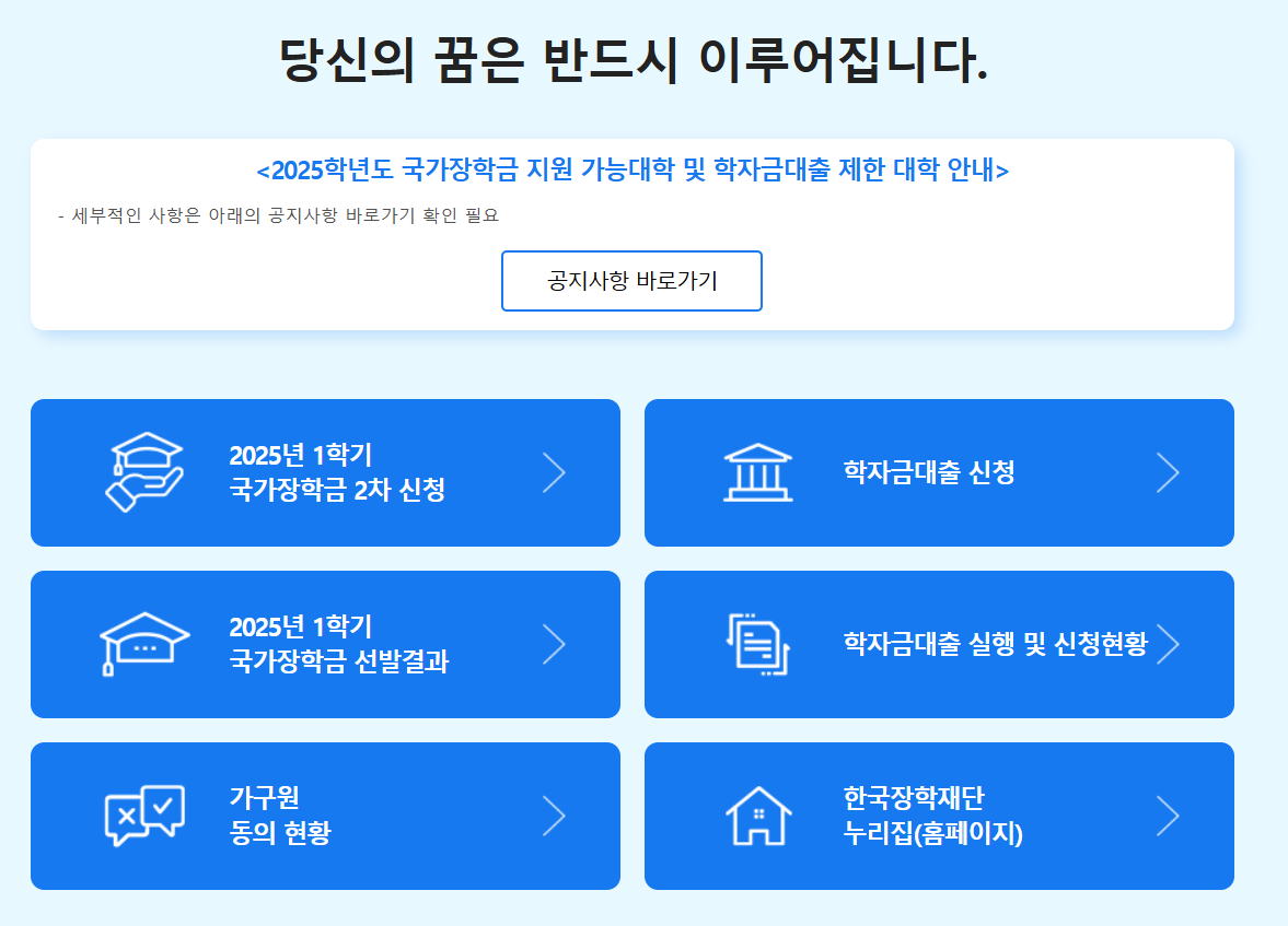 - 대학 장학금 👉 각 대학 홈페이지(장학금 공지 확인)